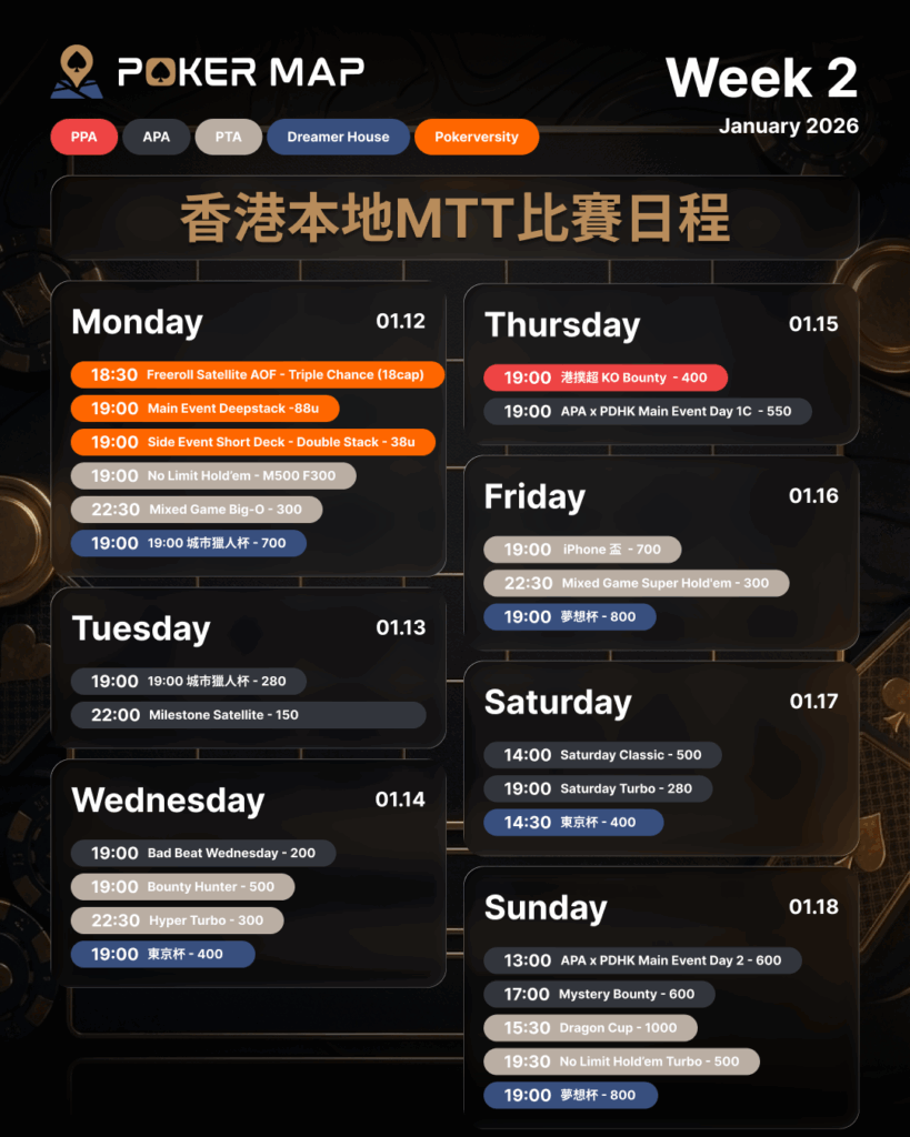 地圖只係第一步!POKERMAP將每週獨家整合全港協會賽程表 📅